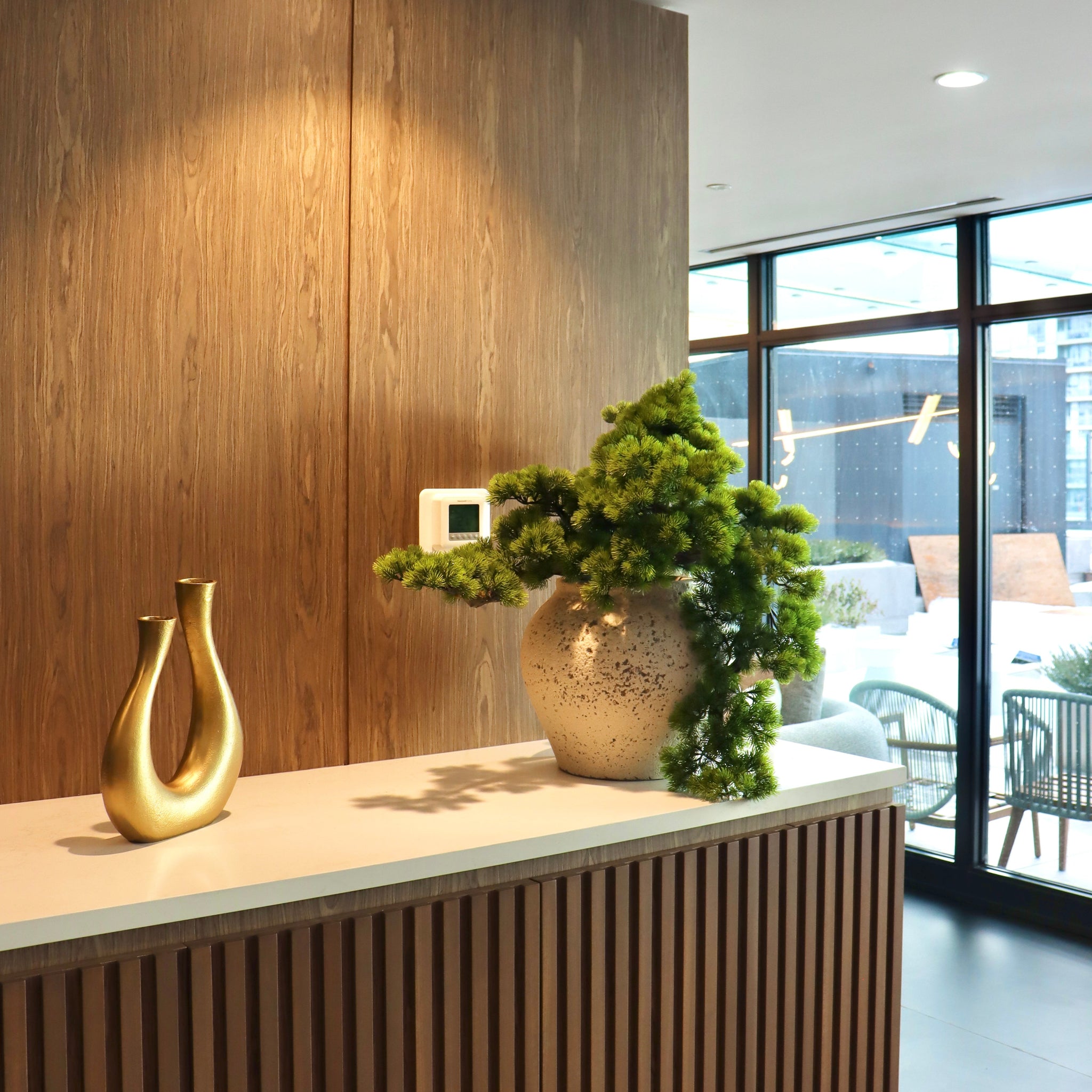 A modern faux tabletop bonsai that blends artistry and nature. Contact us directly for any custom pot requests.